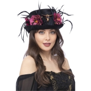 Smiffy's - Heks & Spider Lady & Voodoo & Duistere Religie Kostuum - Bloemen En Bull Hoed Met Veren - Paars, Zwart - Halloween - Verkleedkleding