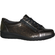 SOLIDUS artikel/model 29001-30525 KATE (K) perlcalf/meteora anthrazit/nut zijn super brede antraciet grijs metallic + brons metallic print comfort-orthopedische damesschoenen veterschoenen sneakers…