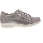 Solidus veterschoen voor dames, artikel in het taupe metallic leer. De maakwijze bij Solidus damesschoenen is altijd volledig leder. De schoen beschikt tevens over een uitneembaar voetbed. De pasvorm…