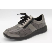 Sportieve grijze sneaker met stretch in het voorblas. veter en rits sluiting. Wijdte K uitneembaar voetbed…