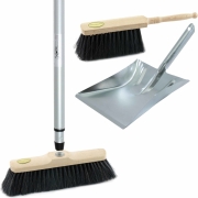 Bezemset bruin/zilver. De set bestaat uit een stoffer en blik en een bezem inclusief telescoopsteel. Materiaal stofblik: verzinkt metaal. Materiaal telescoopsteel: metaal. Materiaal stoffer en…