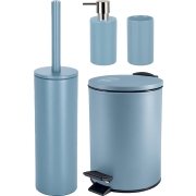 Badkamer accessoires set - WC-borstel/pedaalemmer/zeeppompje/beker - metaal/keramiek - lichtblauw -