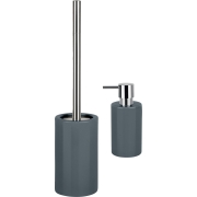 Badkamer accessoires set - WC-borstel/zeeppompje - porselein - donkergrijs -