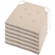 6x stoelkussens Coline voor binnen en buiten/tuin stoelen in de kleur beige met afmetingen van 38 x 38 x 4 cm. Makkelijk vast te maken met aangehechte touwtjessluiting. Materiaal: 100% katoen.…