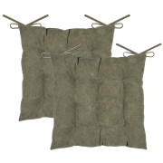 Stof Textile stoelkussen Dandy - 2x - olijfgroen - 38 x 38 x 5 cm - touwtjes sluiting - ribcord -