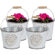 4x plantenpot/bloempot emmer gemaakt van zink met de tekst Flower Garden in Bloom in de kleur zilver en een houten handvat. Ieder plantje komt prachtig tot zijn recht in deze fraaie bloempot.…