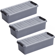 4 stuks opberg box/opbergdoos met een inhoud van 3.5 liter en afmetingen van 38 x 14 x 9 cm. Kleur: grijs. Materiaal: kunststof. Grijze opberg box/doos, ideaal om kleine producten geordend maar…