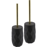 WC/toiletborstel in houder Diamond - 2x - zwart - kunststof - 8 x 34 cm -