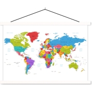 Posterhanger incl. Poster - Schoolplaat - Wereldkaart - Trendy - Kleurrijk - 150x100 cm - Blanke latten