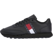 Zwarte Runner-sneaker voor heren met Tommy Jeans-bedrijfsvlag aan de zijkant van leer.…