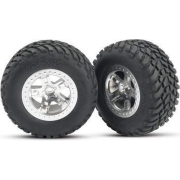 Traxxas - Tire & wheel assy, glued (SCT Split-Spoke, satin chrome wheels) (TRX-5877)