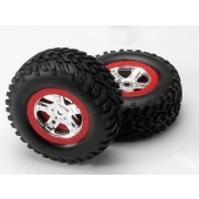 Tires & wheels, assembled, glued (sct, satin chrome wheels, red beadlock (dual profile 2.2" outer 3.0" inner), sct off-road tires, foam inserts) (2)