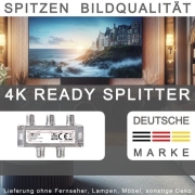 TronicXL Premium 2-voudige antenneverdeler splitter met 40dB (2 x 20dB) satellietversterker DC-Power Pass digitaal HD voor satelliet TV DVBT DVBS Unicable 3D 4K HDTV I verdeler zachte inline voor 2 televisies splitter