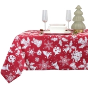 Kerst tafelkleed/tafellaken rood met kerstprint 150 x 250 cm -