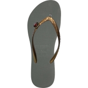 De steentjes in de vorm van een bloemetje op de Aby Flower geven de teenslipper een lieflijke uitstraling. Draag ze onder een stoere jeans of een fladderig zomerjurkje. De gouden details rondom de…