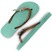 Wist je dat dolfijnen symbool staan voor speelsheid en vrijheid? De Crystal Dolphin slippers zijn versierd met kleine dolfijntjes en verschillende grote en kleine stenen. De zilveren ketting die over…