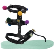 Waan je op Ibiza met onze Mystique Pompom! Deze sandalen herken je aan de pompons en kleurrijke stenen. Door de drukknoopjes, kun je de pompons en stenen zelf verwisselen. Kies uit een groot aantal…