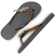 Wist je dat dolfijnen symbool staan voor speelsheid en vrijheid? De Black Dolphin slippers zijn versierd met kleine dolfijntjes en verschillende grote en kleine stenen. De zilveren ketting die over…