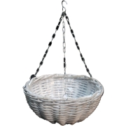 Hangmand - wit - D40 cm - wilg gevlochten - hangende plantenbak - aan ketting - plantenmand -