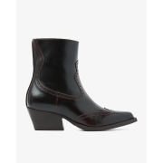 Key features Subtiel blokhakje Spitse neus Decoratieve naad op de zijkant Functionele rits aan binnenzijde Leren binnenvoering Gemaakt van…