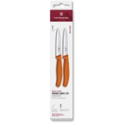 Driedelige messenset uit de Victorinox Classic serie. Bestaande uit een schilmesje met kartels, een schilmesje zonder kartels en een tomatenmes met gegolfd heft. Vlijmscherp en de heften liggen…
