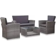 vidaXL 4-delige Loungeset met kussens poly rattan grijs