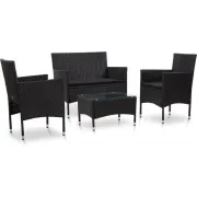 vidaXL 4-delige Loungeset met kussens poly rattan zwart
