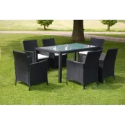 Deze prachtig ontworpen rattan tuinmeubelset bestaat uit 1 tafel, 6 stoelen en 6 verwijderbare zitkussens, en wordt het middelpunt van je tuin of terras! De stalen frames en aluminium voeten…