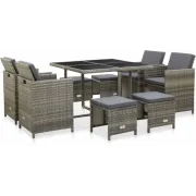 vidaXL 9-delige Tuinset met kussens poly rattan grijs