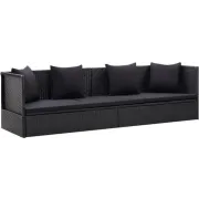 vidaXL Tuinbed met kussens poly rattan zwart