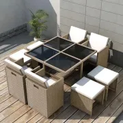 Onze stijlvolle rattan tuinmeubelset wordt het middelpunt van je tuin of terras! Deze eethoek heeft een elegant ontwerp en is een geweldige keuze voor al fresco dineren en ontspannen in de tuin.…