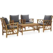 vidaXL 5-delige Loungeset met kussens massief acaciahout