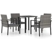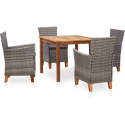 vidaXL 5-delige Tuinset met kussens poly rattan grijs