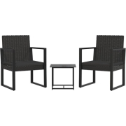 vidaXL 3-delige Bistroset poly rattan en gehard glas zwart