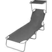 vidaXL Ligbed met luifel inklapbaar staal grijs