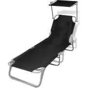 vidaXL Ligbed inklapbaar met luifel aluminium zwart