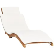 vidaXL Ligbed inklapbaar met crèmewit kussen massief teakhout