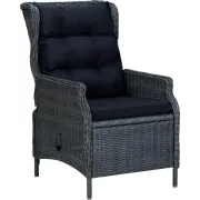 vidaXL Tuinstoel verstelbaar met kussens poly rattan donkergrijs