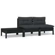 vidaXL 3-delige Loungeset met kussens massief grenenhout zwart
