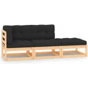 vidaXL 3-delige Loungeset met kussens massief grenenhout