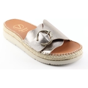 Slipper van Viguera in brons metallicleer. Art. 1970 heeft een gesp garnering op de band van de slipper. Deze slipper is leergevoerd en heeft een beige kleurige rubberzool…
