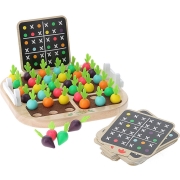 Het klassieke sudoku spel in een nieuw jasje 'Sudoku des légumes - Jour de récolte' van het Franse merk Vilac. In plaats van met cijfers moet het houten spelbord gevuld worden met zes kleuren…