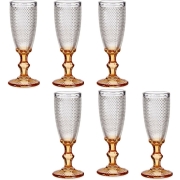 Vivalto Prosecco/champagneglazen - glas - set 6x stuks - 185 ml - Luxe Diamonds relief glas -