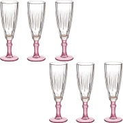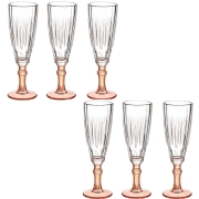 Luxe Monaco serie Cava of Champagneglazen set van 12x stuks op roze gekleurde voet 180 ml. Prachtige luxe uitstraling glazen collectie van Vivalto. De voet is roze gekleurd in het glaswerk, de…