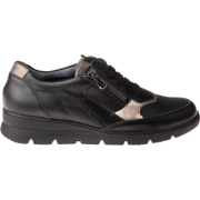 Zwarte halfhoge veterschoen met twee ritsen van het merk Waldläufer. Voorzien van een uitneembaar voetbed.…