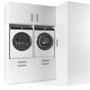 Maak je wasruimte ergonomischer én overzichtelijker met deze dubbele wasmachine verhoger met lades en uittrekbare plateaus. Deze praktische oplossing tilt zowel je wasmachine als je droger naar een…