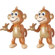 Opblaasbaar aapje - 2x - bruin - 50 cm - opblaasartikelen van dieren - apen - jungle - party -