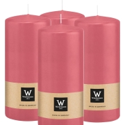 Cilinderkaars/stompkaars - 4x - roze - 15 x 7 cm - 63 branduren -
