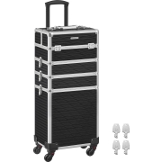 Zwarte 4-İn-1 Make-Upkoffer Met Extra Grote Kapperskoffer, Afsluitbaar, 360 Graden Draaibare Wielen, 34 X 24 X 79,3 Cm, Ideaal Voor Reizen, Perfect Als Cadeau-İdee