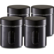 Set van 6x voorraadpotten/voorraadblikken met venster in de kleur zwart. De blikken zijn geschikt om bijvoorbeeld noten, pasta, rijst, ontbijtgranen en snoep in te bewaren. De schroefdeksel is…
